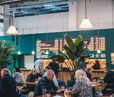 Manchester’s internationally famous Cloudwater Brew Co. has a spacious on-site taproom at Unit 9 of the Piccadilly Trading Estate. This is truly a beer lover’s paradise. The taproom sports 20 draft taps, all pouring Cloudwater’s freshest releases and barrel-aged specials. Every beer flows from a walk-in cold store held at just 3°C to ensure maximum freshness. Expect cutting-edge modern styles: in one visit you might sample a bright, hoppy session IPA, a juicy double IPA, and a rich barrel-aged imperial stout. Cloudwater often collaborates with artists, so the interior features bold artwork and a modern design. There’s also a shop corner selling cans of Cloudwater and merch to go. On weekends, local street-food traders set up outside (or sometimes inside) so you can pair your beer with gourmet snacks. In short, Cloudwater’s taproom combines “20 draft taps brimming with fresh releases and barrel-aged delights”, making it one of Manchester’s premier craft beer destinations.
