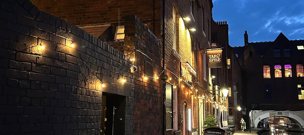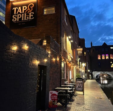 Tap & Spile is a beloved traditional pub in Birmingham city centre (10–16 Gas Street, B1 2JT) known for its scenic canal side views and warm, old-fashioned pub atmosphere. This pub dates back to 1821, making it one of the area’s older watering holes. Tucked along the historic Gas Street Basin – a picturesque junction of the city’s canal network – Tap & Spile blends heritage charm with friendly, no-frills service. It’s the kind of place where you can savoir a well-kept pint by the water’s edge, enjoying the sight of narrowboats drifting by, all while feeling like you’ve stepped back into a simpler time. The pub attracts an eclectic mix of patrons: local canal boaters (indeed, a group of them rescued and re-opened the pub in 2025), office workers from nearby business districts, tourists exploring Birmingham’s canals, and night-life revellers seeking a relaxed pint away from Broad Street’s club scene. Despite these varied visitors, the consensus is consistent – Tap & Spile offers genuine pub hospitality and a memorable setting. The pub currently holds a strong customer rating (around 4.3 out of 5 on average across major review platforms), reflecting a positive reputation for its atmosphere, location, drinks, and service. Opening hours are convenient too, running 12:00 PM – 11:00 PM Sunday through Thursday, and staying open late on Fridays and Saturdays until 4:00 AM. In short, whether you’re after a laid-back afternoon by the canal or a lively late-night pint, Tap & Spile promises an authentic Birmingham pub experience in a truly one-of-a-kind location.