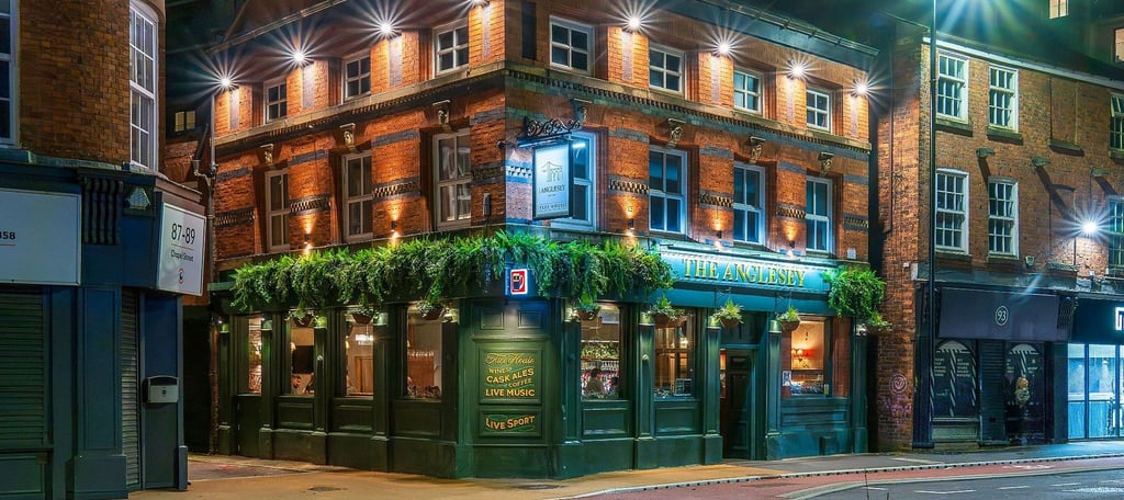 Locals love that The Anglesey shares its street with trendy clubs, cafés, and even a classic street market. In fact, the famous Chapel Street Market (known for street food stalls and fresh produce) is only a few blocks away – a nice spot to explore before or after a pint. For drivers, be aware that street parking is very limited in this zone (permit areas and short bays). There are a few paid parking garages a few minutes’ walk off Chapel Street, but overall the pub is best accessed by foot, bike or public transit. Bicycle racks and nearby cycle lanes make it easy for cyclists. In short, The Anglesey’s central location means it’s convenient as a meeting point for city centre residents and a cosy stop for tourists exploring Manchester and Salford.