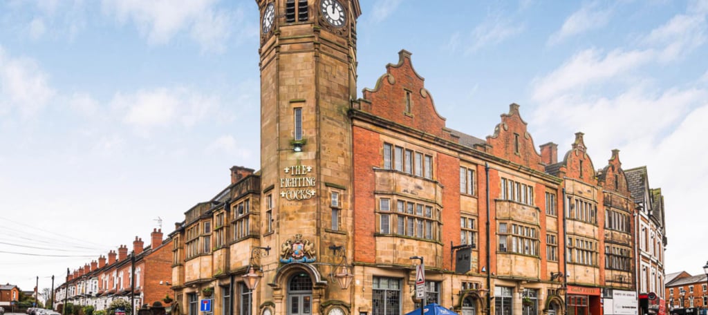 Situated in the heart of Moseley, The Fighting Cocks benefits from a prime location in one of Birmingham’s most vibrant areas. Moseley is a green, historic suburb about 3 miles south of Birmingham city centre – close enough to be convenient, yet filled with its own local character and attractions. The pub’s address on St. Mary’s Row places it right near the main Moseley “village” intersection, adjacent to the picturesque St. Mary’s Church (a Victorian-era church whose spire is a local landmark) and just off the Alcester Road which is Moseley’s high street. This central spot means the pub is easy to reach by public transport: numerous buses run from Birmingham city centre out to Moseley. In particular, the number 50 bus is a famously frequent service (running every few minutes at peak times) that goes straight from the city (passing by Bullring and Digbeth) to Moseley in around 15–20 minutes. There are also other bus routes (including late-night services on weekends) linking Moseley to surrounding districts like Kings Heath and the University area, so you won’t be stranded. For those coming by car or taxi, the pub is roughly a 10-minute drive from central Birmingham if traffic is light. However, as mentioned, parking in the immediate vicinity can be a bit of a challenge – Moseley’s centre has limited on-street parking and it fills up during popular times. There is a small pay-and-display car park a short walk away and some street parking on side roads (time-restricted in spots), but many find it easiest to grab a cab or rideshare and not worry about the car at all. Cyclists will find bike racks near the main junction as well – Moseley is reasonably bike-friendly for the savvy cyclist. In terms of accessibility, if you’re navigating by GPS, the pub’s location is very central in the B13 postcode; just look for the iconic turreted clock on the corner of the building – you can’t miss it once you’re nearby.