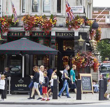 Other aspects of accessibility and comfort: families are welcome; children are allowed in the pub (accompanied by adults) up to the early evening hours. In fact, the pub is listed as family-friendly with a guideline that children are permitted until around 5 PM on the ground floor (and slightly later if dining upstairs). This means daytime visitors can feel comfortable bringing kids for a meal (and you’ll occasionally see a tourist family grabbing lunch, with a cola for the kids and pints for the parents). For those with service dogs or pets, only assistance dogs are typically allowed inside due to space, but dogs are welcome in the outdoor seating area. You might find a couple of patrons outside on the benches with their pups, especially in nice weather. Speaking of which, on a sunny day the outside bench area is wonderful, though limited – it gives you a view of Parliament Street’s iconic architecture and a prime people-watching spot. As noted earlier, the pub offers free Wi-Fi, which is handy as mobile signal can sometimes be spotty inside these old stone buildings. Smokers will have to step outside (the front pavement doubles as the smoking area, since there’s no dedicated beer garden). The interior is air-conditioned, a modern comfort that complements the historic setting – crucial when the place is packed in summer or a warm evening. In summary, The Red Lion’s atmosphere is warm, historic, and inclusive, making you feel like you’ve stepped back in time without sacrificing comfort. While the building’s age poses a few accessibility limitations, the pub compensates with accommodating service and thoughtful touches. Whether you’re a veteran London pub-goer or it’s your first time in one, it’s easy to feel at home here amidst the portraits and panelling, pint in hand, soaking up the very particular ambiance that is The Red Lion.