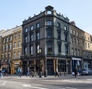 The Ten Bells’ Victorian corner facade stands proudly beneath the towering spire of Christ Church on Commercial Street. The Ten Bells is a historic East End pub (located at 84 Commercial Street, London E1 6LY) renowned for its rich Victorian character and notorious connection to the Jack the Ripper story. This Grade II-listed tavern has existed in one guise or another since the mid-18th century and retains many original features – from its ornate tiled interior walls to a famous mural commemorating Spitalfields’ weaving heritage. Stepping inside almost feels like stepping back in time, yet the pub adeptly blends old-world charm with modern hospitality. It’s a popular watering hole for local office workers, Spitalfields market-goers, and curious tourists alike, drawn by its well-kept ales, hearty food, and the palpable sense of East London history in the air. The pub holds a solid customer rating (around 4.0/5.0), reflecting generally positive feedback on its atmosphere, drinks, and character. Opening hours are 12:00 PM – 12:00 AM Sunday through Wednesday, with extended late-night hours until 1:00 AM on Thursdays, Fridays and Saturdays.